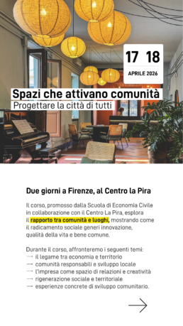 CONVEGNO GRATUITO 29 OTTOBRE 2024 Il convegno, organizzato dalla Scuola di Economia Civile in collaborazione con la Fondazione dei Dottori dei Commercialisti e degli Esperti Contabili di Firenze, presenta il tema della responsabilità d’impresa nella prospettiva dell’Economia Civile, le ragioni che portano dalla responsabilità sociale a quella…